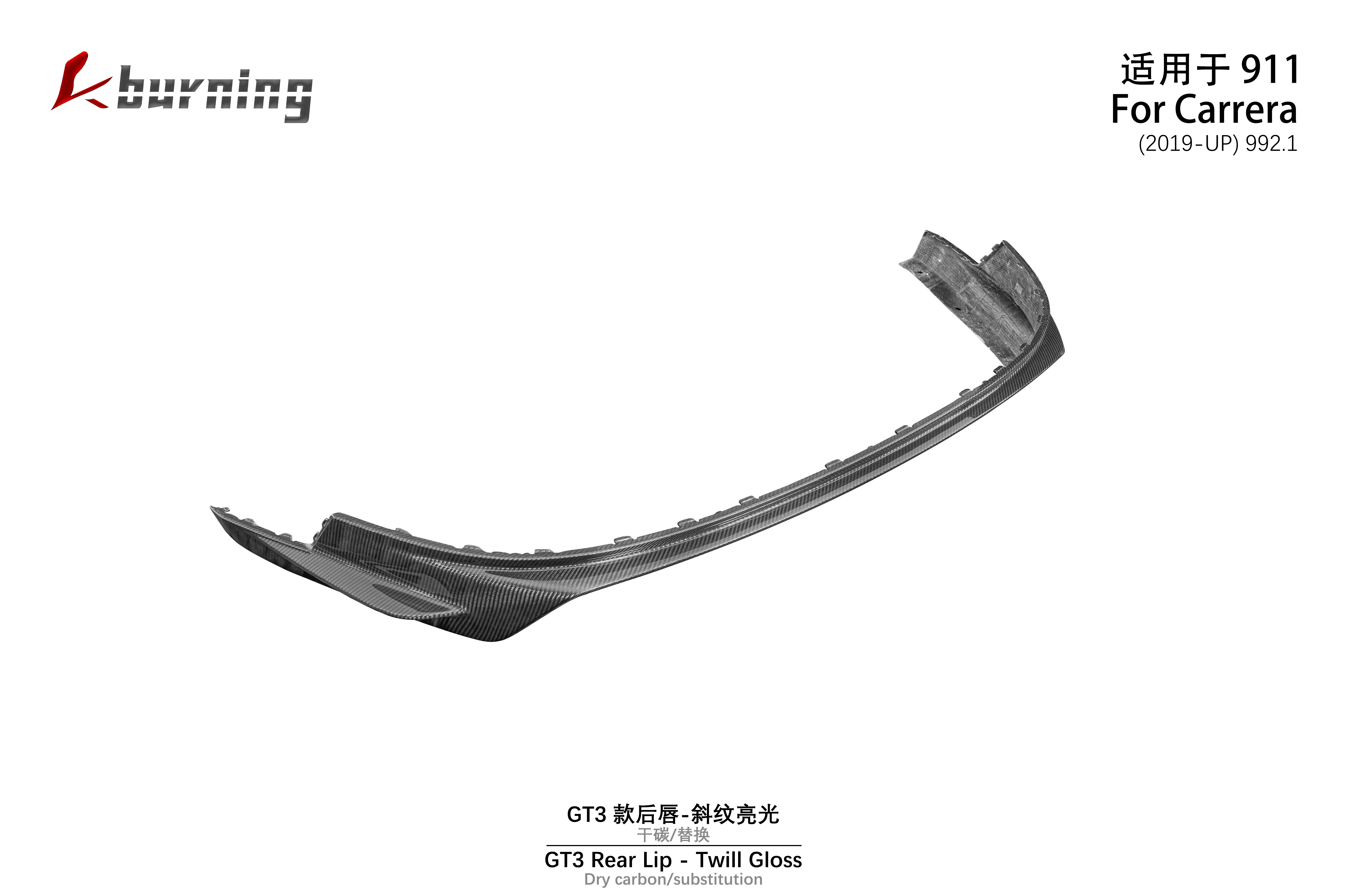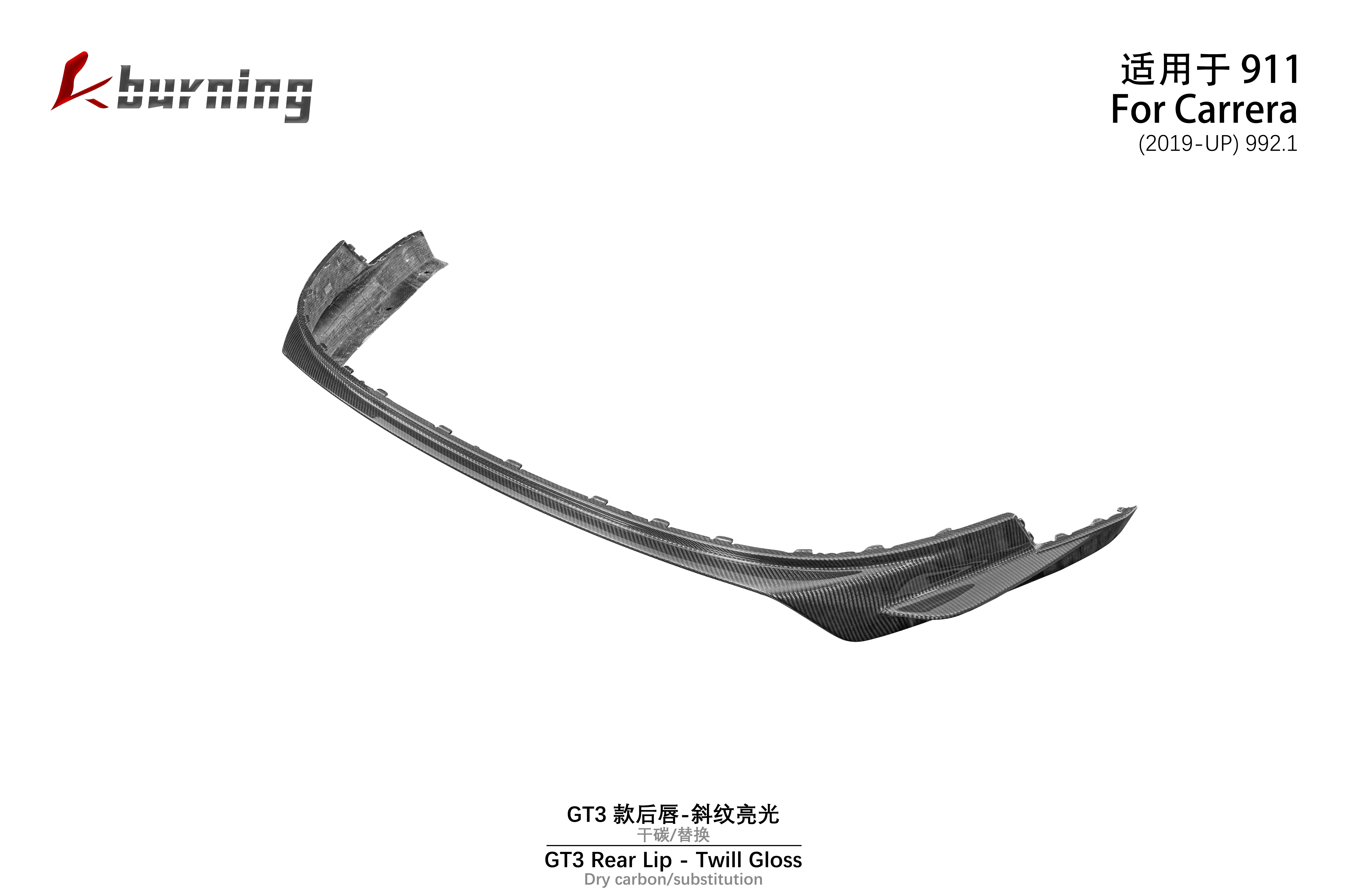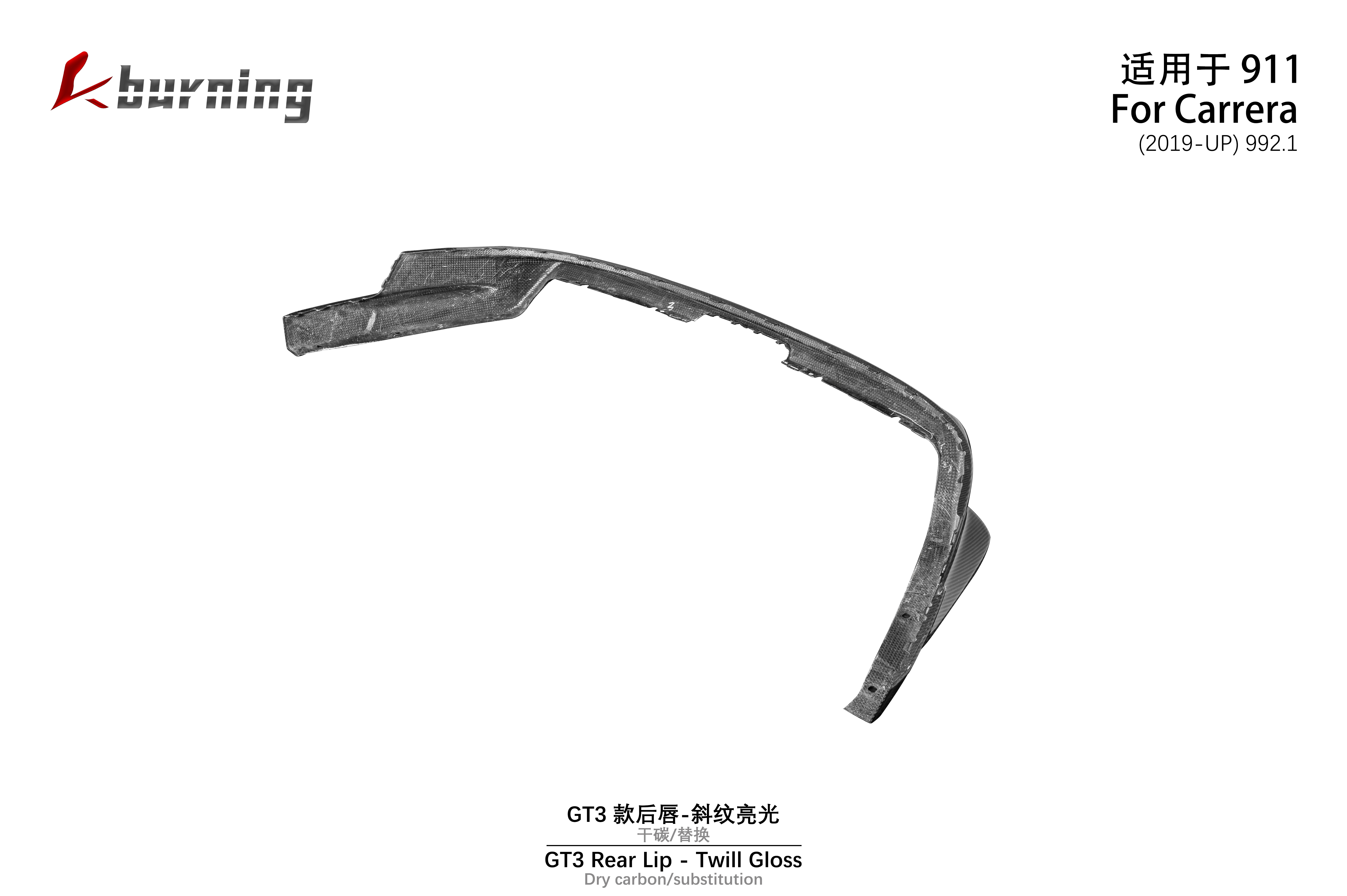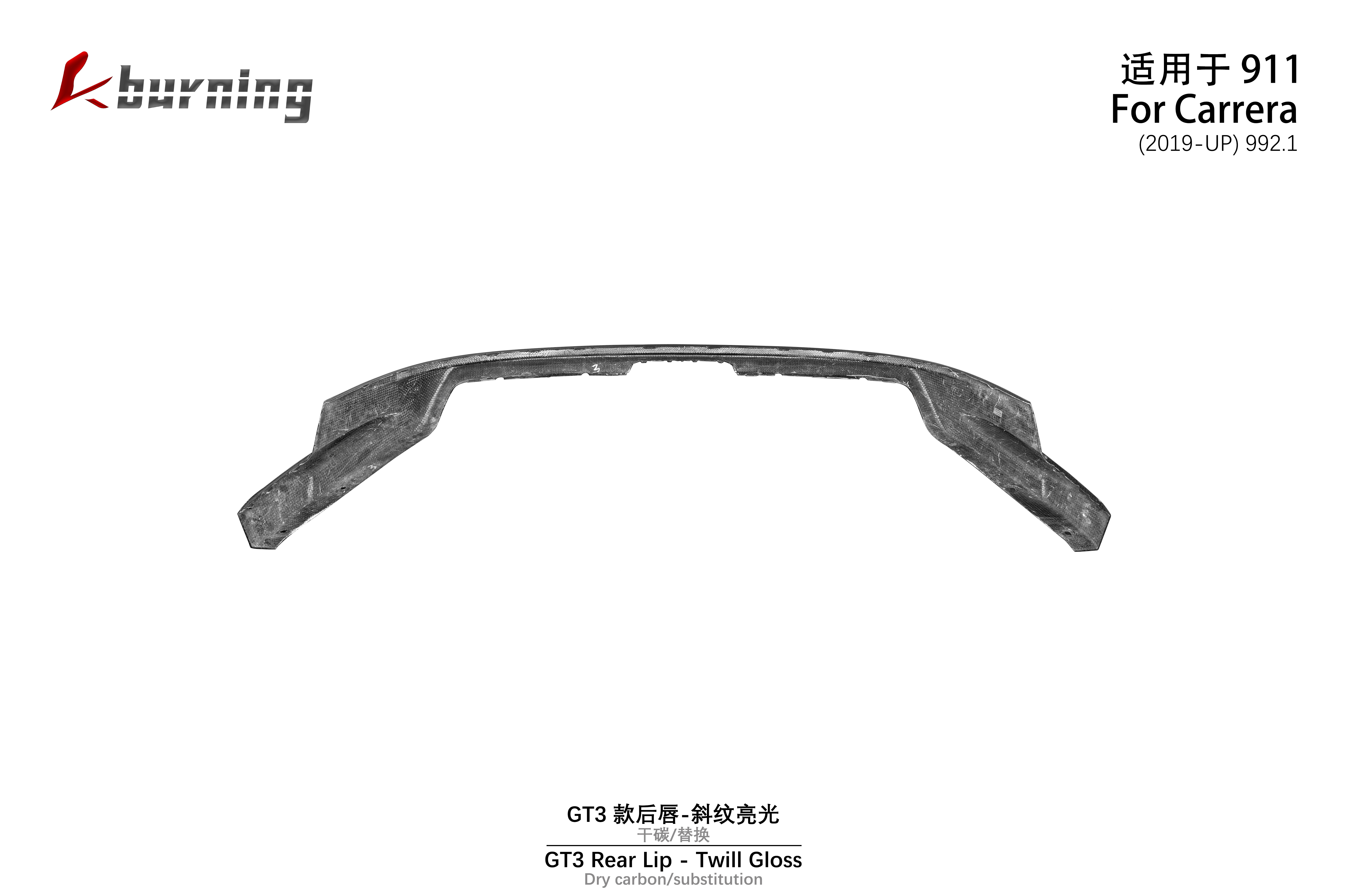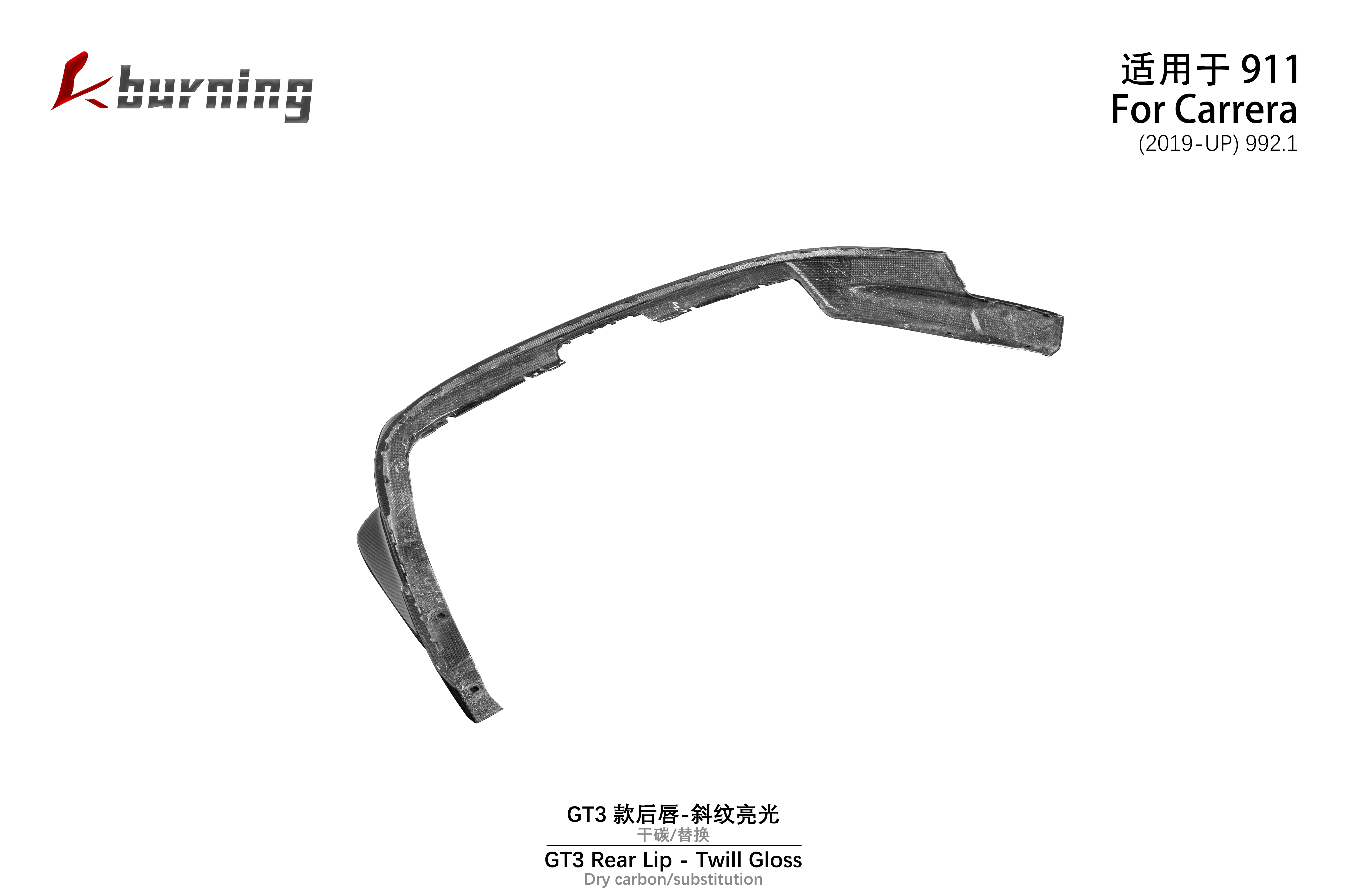 适用于992 GT3款后唇-斜纹亮光 干碳替换