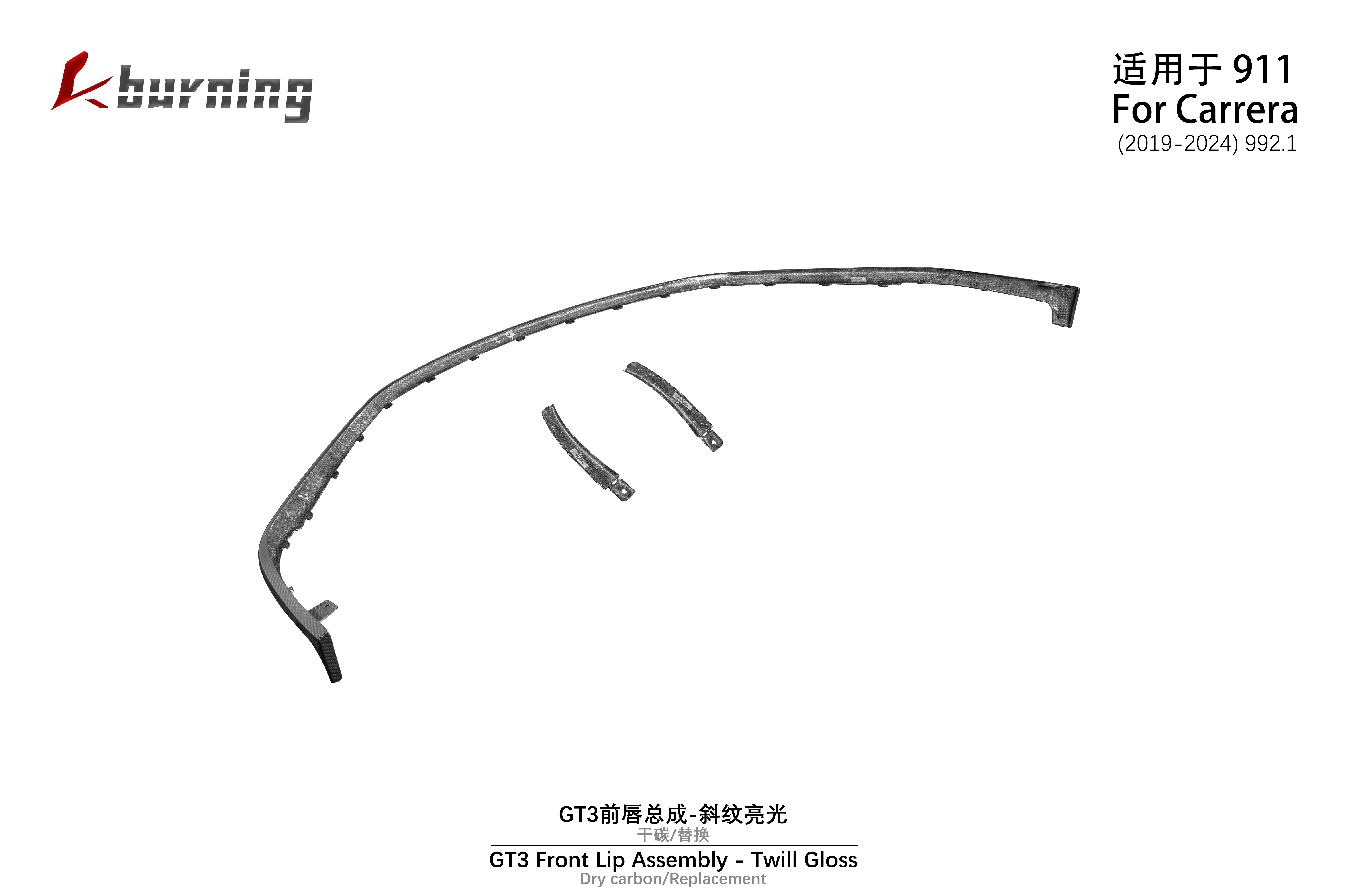 适用于992 GT3前唇总成-斜纹亮光 干碳替换